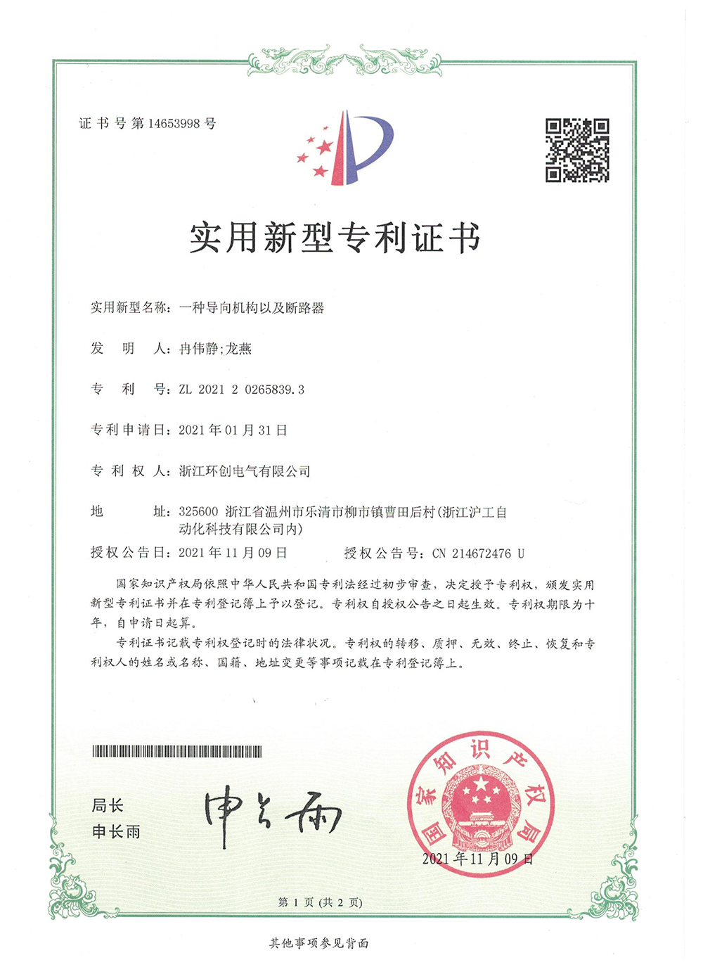 一種導(dǎo)向機構(gòu)以及斷路器專利證書