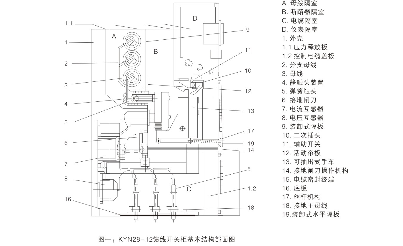 KYN28A-12鎧裝移開式金屬封閉開關(guān)設(shè)備適用于3.6-12kV三相交流50Hz電網(wǎng),作為接受和分配電能,并對(duì)電路實(shí)行控制、監(jiān)測(cè)和保護(hù)之用??捎糜趩文妇€、單母線分段系統(tǒng)或雙母線系統(tǒng)。開關(guān)設(shè)備符合IEC298《額定電壓1kV以上52kV及以下交流金屬封閉開關(guān)設(shè)備和控制設(shè)備》、IEC694《廟壓開關(guān)和控制設(shè)備共用條款》,我國(guó)GB3906(3-35kV交流金屬封閉開關(guān)設(shè)備》及DIA04《戶內(nèi)交流高壓開關(guān)柜訂貨條件》,德國(guó)DIN.VDE0670《額定電壓IkV以上的交流開關(guān)設(shè)備》等標(biāo)準(zhǔn)的要求。并具有完善、可靠的防誤操作功能。