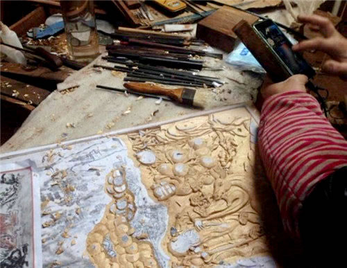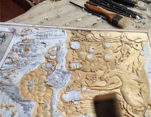 3、使用修光刀對圖案進(jìn)一步處理,這個(gè)過程又叫鏟活兒,主要是將有棱角的地方修平,突出雕刻圖案的線腳,對凹陷進(jìn)去的部分加以鏟平。