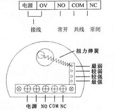 2.具體方法:打開接線盒,將扭力彈簧靠近多孔一端拿出,根據(jù)需要插入對應的孔中(靠近端子臺的孔扭力最弱)。