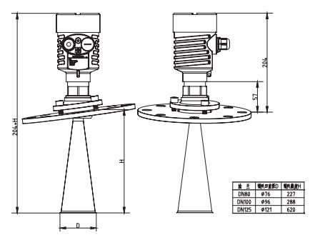 SKD59萬向喇叭雷達物位計外型尺寸圖