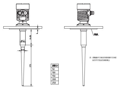 SKD52防腐棒式雷達(dá)物位計外型尺寸圖