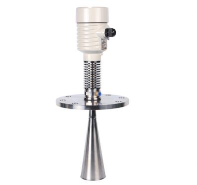 SKD54A高溫喇叭天線雷達(dá)物位計(jì) SKD54A高溫喇叭天線雷達(dá)物位計(jì)傳感器是雷達(dá)式物位測量儀表測量距離最大35米,可以用于存儲罐、中間緩沖罐或過程容器的物位測量,輸出4~20mA疊加HART信號。 輸入 高溫喇叭天線雷達(dá)物位計(jì)天線接收反射的微波脈沖并將其傳輸給電子線路,微處理器對此信號進(jìn)行處理,識別出微脈沖在物料表面所產(chǎn)生的回波。正確的回波信號識別由智能軟件完成,精度可達(dá)毫米級。距離物料表面的距離D與脈沖的時間行程T成正比:D=C×T/2(其中C為光速) 因空罐的距離E已知,則物位L為:L=E-D 輸出 通過輸入空罐高度E(=零點(diǎn)),滿罐高度F(=滿量程)及一些應(yīng)用參數(shù)來設(shè)定,應(yīng)用參數(shù)將自動使儀表適應(yīng)測量環(huán)境。對應(yīng)于4~20mA輸出。 高溫喇叭天線雷達(dá)物位計(jì)參數(shù) 應(yīng) 用:適用于高爐料位,較厚罐頂?shù)膬藓桶惭b短管較高的工況測量 測量范圍:35米 過程連接:萬向法蘭 介質(zhì)溫度:-40~500℃ 過程壓力:常壓 精 度:±15mm 頻率范圍:6GHz 防爆等級:Exb IIBT4 Gb 防護(hù)等級:IP67 信號輸出:4~20mA/HART(兩線) SKD54A高溫喇叭天線雷達(dá)物位計(jì)外型尺寸圖 ![]() SKD54A高溫喇叭天線雷達(dá)物位計(jì)安裝圖 ![]() SKD54A高溫喇叭天線雷達(dá)物位計(jì)選型