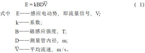 電磁流量計的基本原理是法拉第電磁感應定律,即導體在磁場中切割磁力線運動時在其兩端產(chǎn)生感應電動勢。如圖1所示,導電性液體在垂直于磁場的非磁性測量管內(nèi)流動,與流動垂直的方向上產(chǎn)生與流量成比例的感應電勢, 電動勢的方向按弗來明右手規(guī)則,其值如下式: