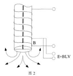 管道式電磁流量傳感器的測量原理是基于法拉第電磁感應定律(見圖 1 ),在與測量管道軸線和磁場磁力線相互垂直的管壁上安裝一對檢測電極, 當導電液體沿測量管軸線運動時,導電液體作切割磁力線運動產生感應電勢,此感應電勢由測量管上的兩個電極檢出,數值大小為:
