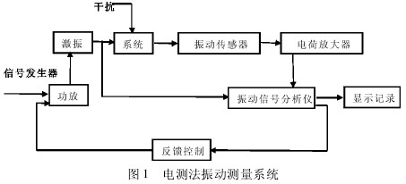根據(jù)上述內容可知,本文振動測量系統(tǒng)研究中采用的是電測法,這是振動測量中常用方法,與光測法和機械法比較而言,該方法具有使用頻率范圍寬,動態(tài)范圍廣,測量靈敏度高等優(yōu)勢,而且電測法能夠適用于不同的測振傳感器,而信號也便于被記錄、處理和傳送。由此,本文中的振動測量系統(tǒng)主要由:振動傳感器、電荷放大器、信號分析儀等構成,如圖1所示。