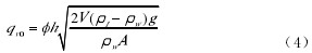1 引 言 轉(zhuǎn)子流量計(jì)和差壓式流量計(jì)是工業(yè)上和實(shí)驗(yàn)室中的流量計(jì). 雖然都是測(cè)量流量的儀表,但是其原理卻大相徑庭,其流量基本方程的推導(dǎo)也不相同,因此,導(dǎo)致儀表的特點(diǎn)和適用場(chǎng)合也有所區(qū)別 . 2 流量計(jì)組成與流量測(cè)量原理 2.1 轉(zhuǎn)子流量計(jì) 轉(zhuǎn)子流量計(jì),是由一個(gè)自下往上逐漸擴(kuò)大的帶刻度的錐形管和一個(gè)置于錐形管內(nèi)可以自由上下移動(dòng)的轉(zhuǎn)子構(gòu)成. 工作時(shí),被測(cè)流體由錐形管下端進(jìn)入,沿著錐形管向上運(yùn)動(dòng),流過(guò)轉(zhuǎn)子與錐形管之間的環(huán)隙,再?gòu)腻F形管上端流出 . 受流動(dòng)流體帶動(dòng)作用,轉(zhuǎn)子受到一個(gè)自下向上流體對(duì)轉(zhuǎn)子的動(dòng)壓力,正好等于轉(zhuǎn)子在被測(cè)流體中的重力(即轉(zhuǎn)子自身的重力減去流體對(duì)轉(zhuǎn)子的浮力). 垂直安裝流量計(jì)時(shí),轉(zhuǎn)子重心就在錐形管中心軸線上,轉(zhuǎn)子所受的三個(gè)力都平行于中心軸線 . 當(dāng)受力平衡時(shí),轉(zhuǎn)子就穩(wěn)定在錐管內(nèi)某一位置上 . 對(duì)于給定的轉(zhuǎn)子流量計(jì),轉(zhuǎn)子的材料、大小和形狀都可確定,所以轉(zhuǎn)子在被測(cè)流體中的重力是已知的,只有流體對(duì)轉(zhuǎn)子的動(dòng)壓力是隨流體流速大小而變化的 . 因此當(dāng)流體流速變大或變小時(shí),轉(zhuǎn)子受到的動(dòng)壓力增大或減小,轉(zhuǎn)子將作向上或向下的移動(dòng),轉(zhuǎn)子與錐形管壁之間的環(huán)隙面積也發(fā)生變化,即流動(dòng)截面積也發(fā)生變化,待變化到某一流速轉(zhuǎn)子受力平衡時(shí),轉(zhuǎn)子就穩(wěn)定在新的位置上 . 對(duì)于一臺(tái)給定的轉(zhuǎn)子流量計(jì),轉(zhuǎn)子在錐管中平衡位置的高低反應(yīng)了被測(cè)流體流經(jīng)錐形管的流量大小 . 2.2 差壓式流量計(jì) 差壓式流量計(jì)由三部分組成,即由節(jié)流裝置、導(dǎo)壓管和差壓計(jì) . 差壓式流量計(jì)是利用流體流動(dòng)的節(jié)流原理來(lái)實(shí)現(xiàn)流量測(cè)量的.節(jié)流原理是流體在有節(jié)流裝置的管道中流動(dòng)時(shí),在節(jié)流裝置前后的管壁處,流體的靜壓力產(chǎn)生差異的現(xiàn)象 . 流動(dòng)流體的能量有靜壓能和動(dòng)能兩種形式.流體具有靜壓能是因?yàn)橛袎毫Γ哂袆?dòng)能是因?yàn)橛辛鲃?dòng)速度,在一定條件下,這兩種形式的能量是可以相互轉(zhuǎn)化 . 根據(jù)能量守恒定律,在沒(méi)有外加能量的前提下,流體所具有的靜壓能和動(dòng)能,再加上用以克服流體流動(dòng)阻力的能量損失,其能量總和是相等的 . 圖 2 表示在節(jié)流裝置前后截面Ⅰ、Ⅱ及Ⅲ處流體壓力與速度的分布情況 . 流體在到達(dá)截面Ⅰ之前,以一定的流速 v1流動(dòng),此時(shí)靜壓力為 p1. 在接近節(jié)流裝置時(shí),由于遇到節(jié)流裝置的阻礙,使靠近管壁處的流體受到節(jié)流裝置的阻擋作用,使部分動(dòng)能轉(zhuǎn)化為靜壓能,使得節(jié)流裝置入口端面靠近管壁處的流體靜壓力升高,并且遠(yuǎn)大于管徑中心處的壓力,因此節(jié)流裝置入口端面處產(chǎn)生一徑向壓差 . 在徑向壓差的作用下,流體產(chǎn)生徑向加速度,從而使靠近管壁處的流體質(zhì)點(diǎn)的流動(dòng)方向傾斜于管道中心軸線,出現(xiàn)縮脈現(xiàn)象.由于受到慣性作用,流束的最小截面并不在節(jié)流裝置的孔口處,而是經(jīng)過(guò)節(jié)流裝置之后仍繼續(xù)收縮,到截面Ⅱ處流束達(dá)到最小,此時(shí)流速最大,即 v2,之后流束又逐漸擴(kuò)大,至截面Ⅲ后完全恢復(fù),流速逐漸降到原值,即 v3=v1. 由于節(jié)流裝置產(chǎn)生流束的局部收縮現(xiàn)象,使流體的流速隨之變化,即動(dòng)能也跟著變化 . 根據(jù)能量守恒定律,表征流體靜壓能的靜壓力也要變化 . 在截面Ⅰ處,流體具有靜壓力 p1. 在截面Ⅱ處,流速增到最大 v2,靜壓力就降到最小 p2,而后又隨著流束的恢復(fù)而恢復(fù) . 由于在節(jié)流裝置端面處流通面突然縮小,而節(jié)流裝置之后流通面積突然又?jǐn)U大,使流體形成局部渦流,部分能量被消耗,同時(shí)流體流經(jīng)孔板時(shí),為克服摩擦力也需消耗能量,所以流體在截面Ⅲ處的靜壓力 p3不能恢復(fù)到原值 p1,而產(chǎn)生永久的壓力損失. 截面Ⅰ與Ⅱ處的壓差(δp=p1- p2)與流體在節(jié)流裝置前的流量有一一對(duì)應(yīng)關(guān)系,只要測(cè)出節(jié)流裝置前后的壓差大小即可表示流量大小 . 2.3 總結(jié) 轉(zhuǎn)子流量計(jì)與差壓式流量計(jì)在工作原理上是不相同的 . 轉(zhuǎn)子式流量計(jì),是在節(jié)流面積(如孔板流通面積)不變的條件下,以差壓變化來(lái)反映流量的大;而差壓式流量計(jì),卻是以壓降不變,利用節(jié)流面積的變化來(lái)測(cè)量流量的大小.即轉(zhuǎn)子流量計(jì)的測(cè)量原理可以簡(jiǎn)化為:恒壓降、變節(jié)流;差壓式流量計(jì)的測(cè)量原理簡(jiǎn)化為:變壓降、恒節(jié)流 . 3 流量方程推導(dǎo) 3.1 轉(zhuǎn)子流量計(jì) 轉(zhuǎn)子流量計(jì)中當(dāng)轉(zhuǎn)子穩(wěn)定時(shí),對(duì)轉(zhuǎn)子進(jìn)行受力分析: 其中:ρt為轉(zhuǎn)子的密度;ρf為流體的密度;V 為轉(zhuǎn)子的體積;Δp 為轉(zhuǎn)子前后的壓差(常數(shù));A 為