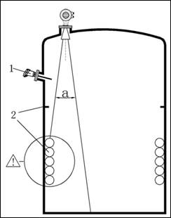 - 如果罐內有(1)(2)干涉物件,應采用導波管進行測量。