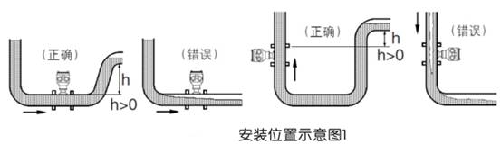 ●若流體含雜質(zhì),則應(yīng)在傳感器上游側(cè)裝過濾器,管道內(nèi)應(yīng)定期清理排放沉淀雜質(zhì);若被測液體含有氣體,則應(yīng)在傳感器上游側(cè)裝消氣器。過濾器和消氣器的排污口和消氣口要通向安全的場所。