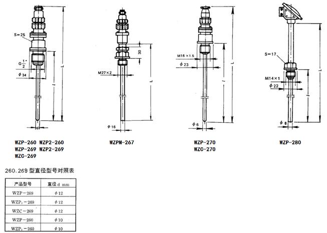 插座式熱電阻尺寸介紹: