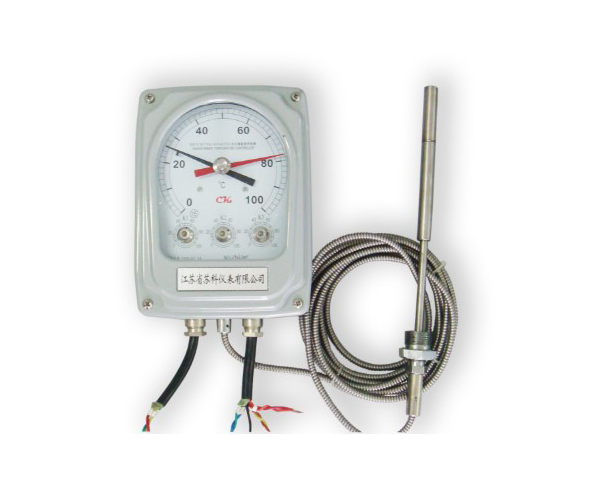 BWY(WTYK)-802A、803A、804型變壓器溫度指示控制器采用復(fù)合傳感器技術(shù),即儀表溫包推動(dòng)彈性元件的同時(shí),能同步輸出Pt100熱電阻信號,此信號可遠(yuǎn)傳到數(shù)百米以外的控制室,通過XMT系列數(shù)顯溫控儀同步顯示并控制變壓器油溫。也可通過XMT系列數(shù)顯溫控儀,將Pt100熱電阻信號轉(zhuǎn)換成與計(jì)算機(jī)聯(lián)網(wǎng)的直流標(biāo)準(zhǔn)信號(0~5V、1~5V、4~20mA)輸出。采用外置接線盒方便用戶接線。